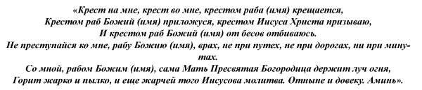 Отче Саваоф, поставь Крест Крестов от неба до земли. Убереги мой дом, закрой его от глаза черного. Дом Христов — Господний покров. Здесь Пречистая Богородица со своими всеми всесильными стражниками и хранителями, охраняйте нас от всех недругов, супостатов. Аминь. Аминь. Аминь."