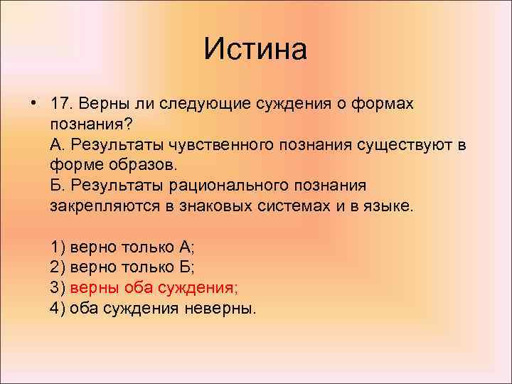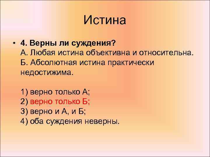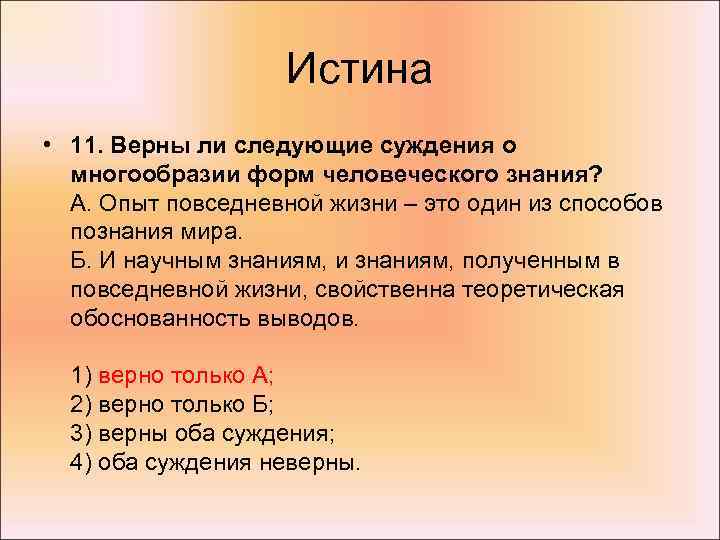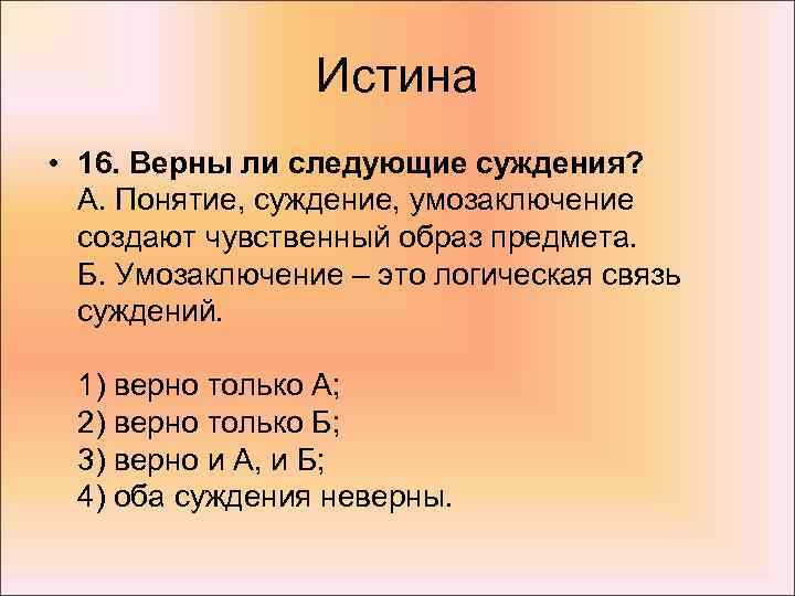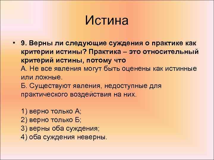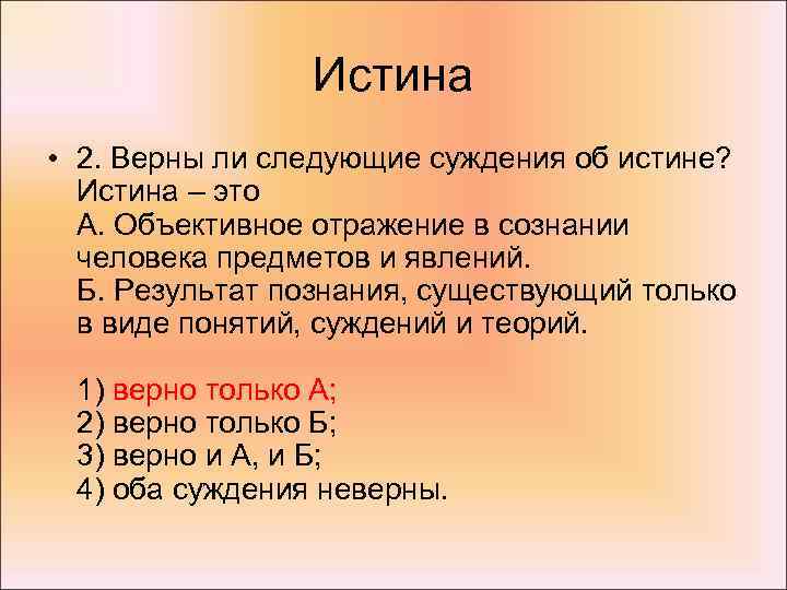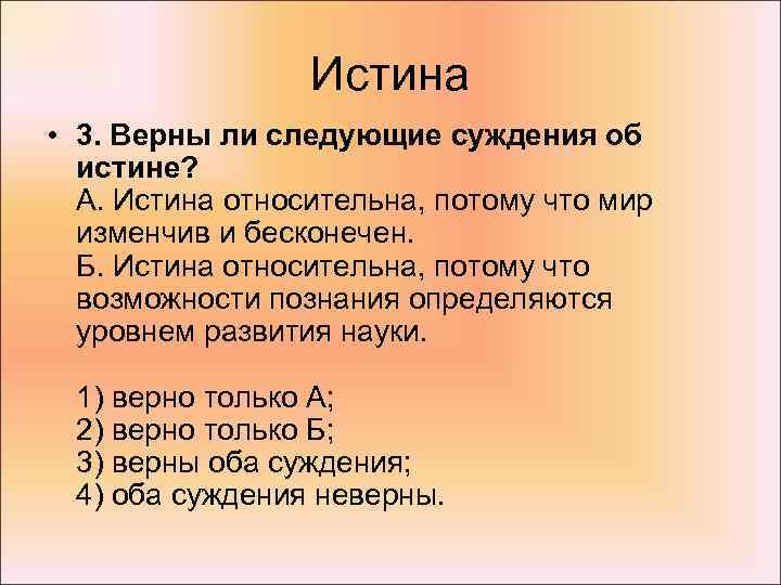 2. Верны ли следующие суждения об истине