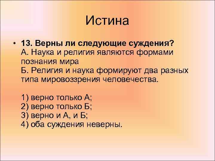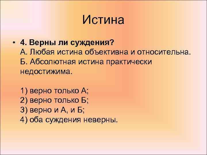 2. Верны ли следующие суждения об истине? Истина – это